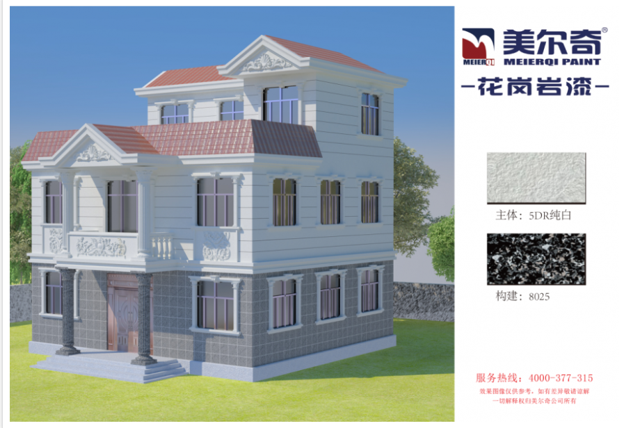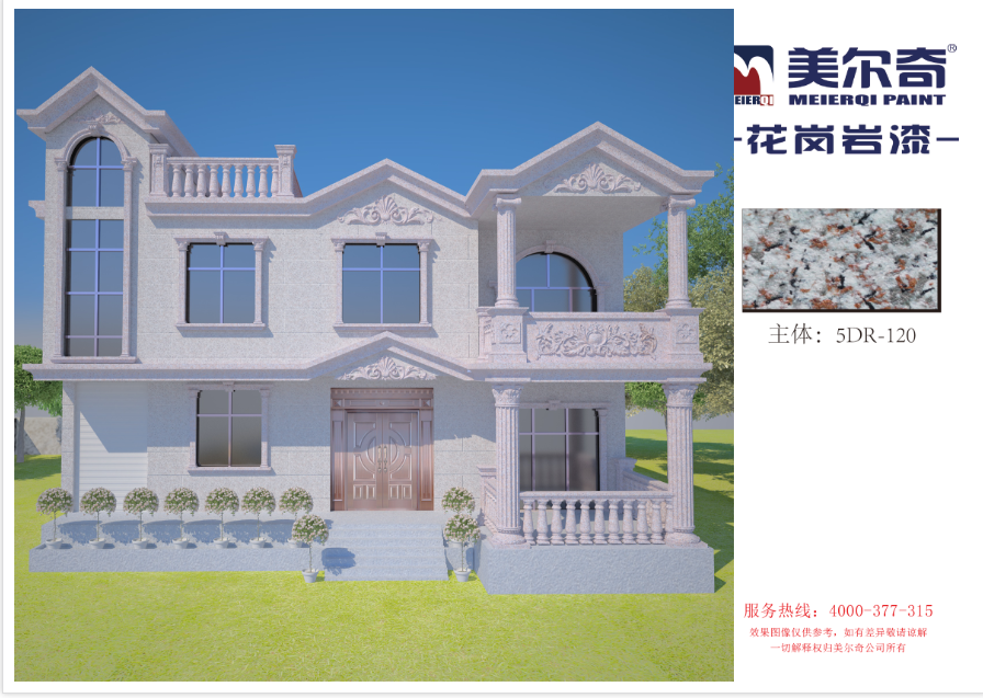 作為新型環(huán)保外墻裝飾涂料,美爾奇仿石漆輕質(zhì)中硬,色彩天然逼真,使用抗開裂的高彈復合化工材料,耐擦洗、耐高溫、使用壽命長。具有防火、防水、耐酸堿、施工性優(yōu)、展色好、柔韌性好、強附著、強抗沖擊、高質(zhì)感、粘力強、永不褪色等特點。