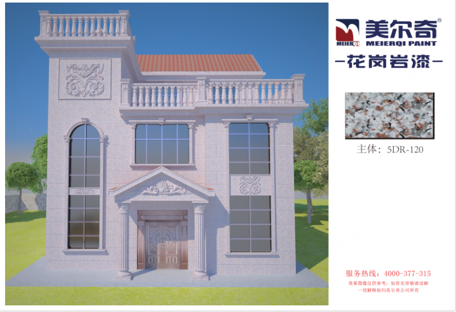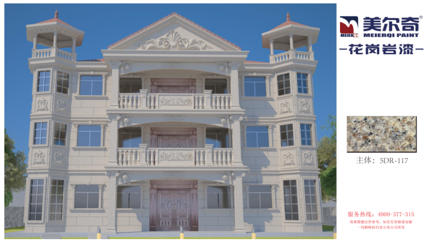 作為新型環(huán)保外墻裝飾涂料,美爾奇仿石漆輕質(zhì)中硬,色彩天然逼真,使用抗開裂的高彈復合化工材料,耐擦洗、耐高溫、使用壽命長。具有防火、防水、耐酸堿、施工性優(yōu)、展色好、柔韌性好、強附著、強抗沖擊、高質(zhì)感、粘力強、永不褪色等特點。