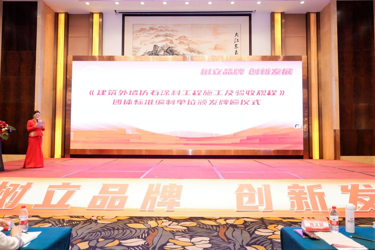 作為國內(nèi)仿石漆領(lǐng)域的領(lǐng)軍品牌之一,美爾奇仿石漆在本次盛會(huì)上不但被評選為《建筑外墻仿石涂料工程施工及驗(yàn)收規(guī)程》團(tuán)隊(duì)標(biāo)準(zhǔn)參編單位,同時(shí)美爾奇仿石漆董事長何代青先生也被同時(shí)選舉為新成立的福建省涂料工業(yè)協(xié)會(huì)藝術(shù)涂料分會(huì)副理事長。這些榮譽(yù),是行業(yè)同仁對美爾奇在十幾年的發(fā)展歷程中取得的行業(yè)地位、成績的充分肯定和認(rèn)同。